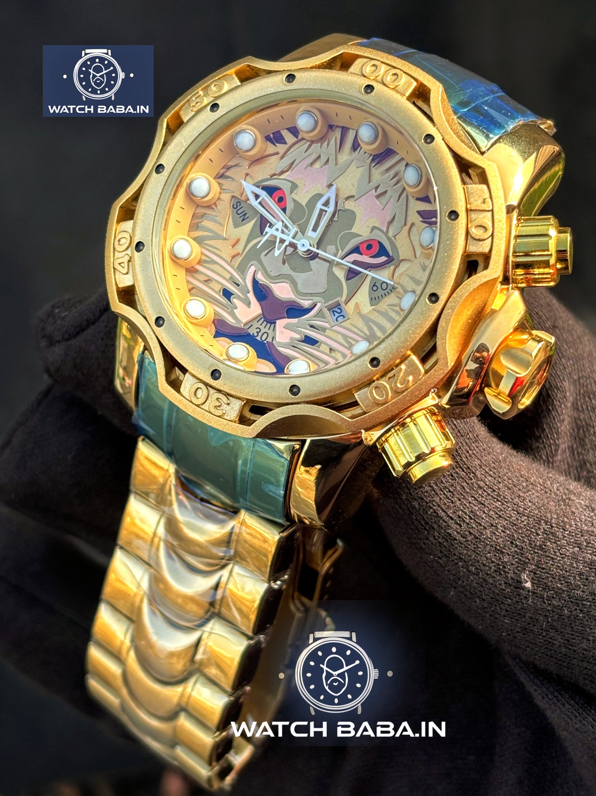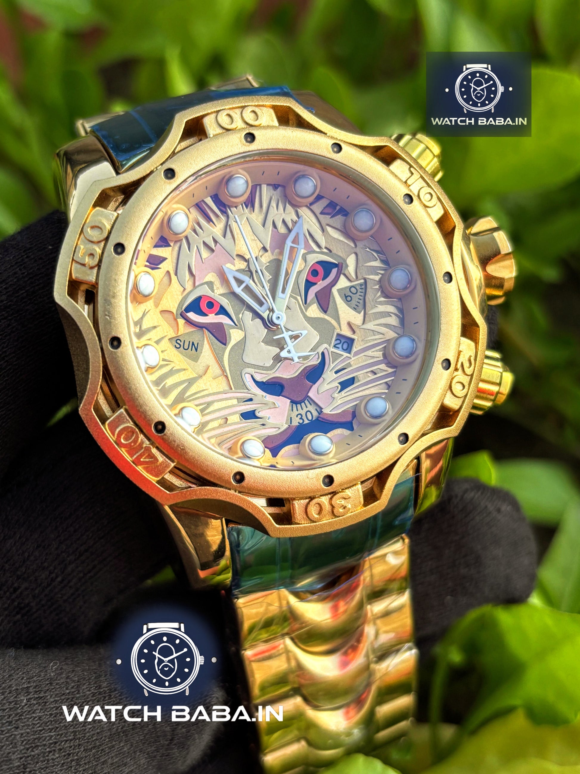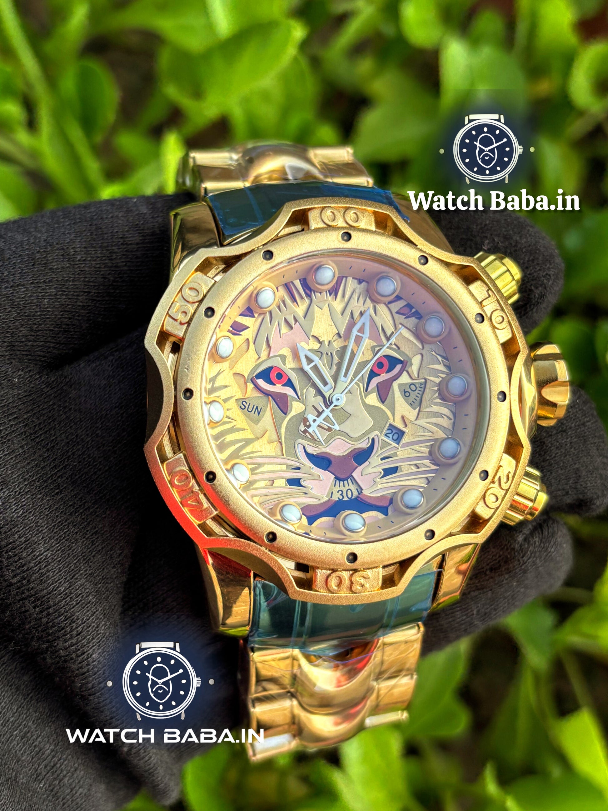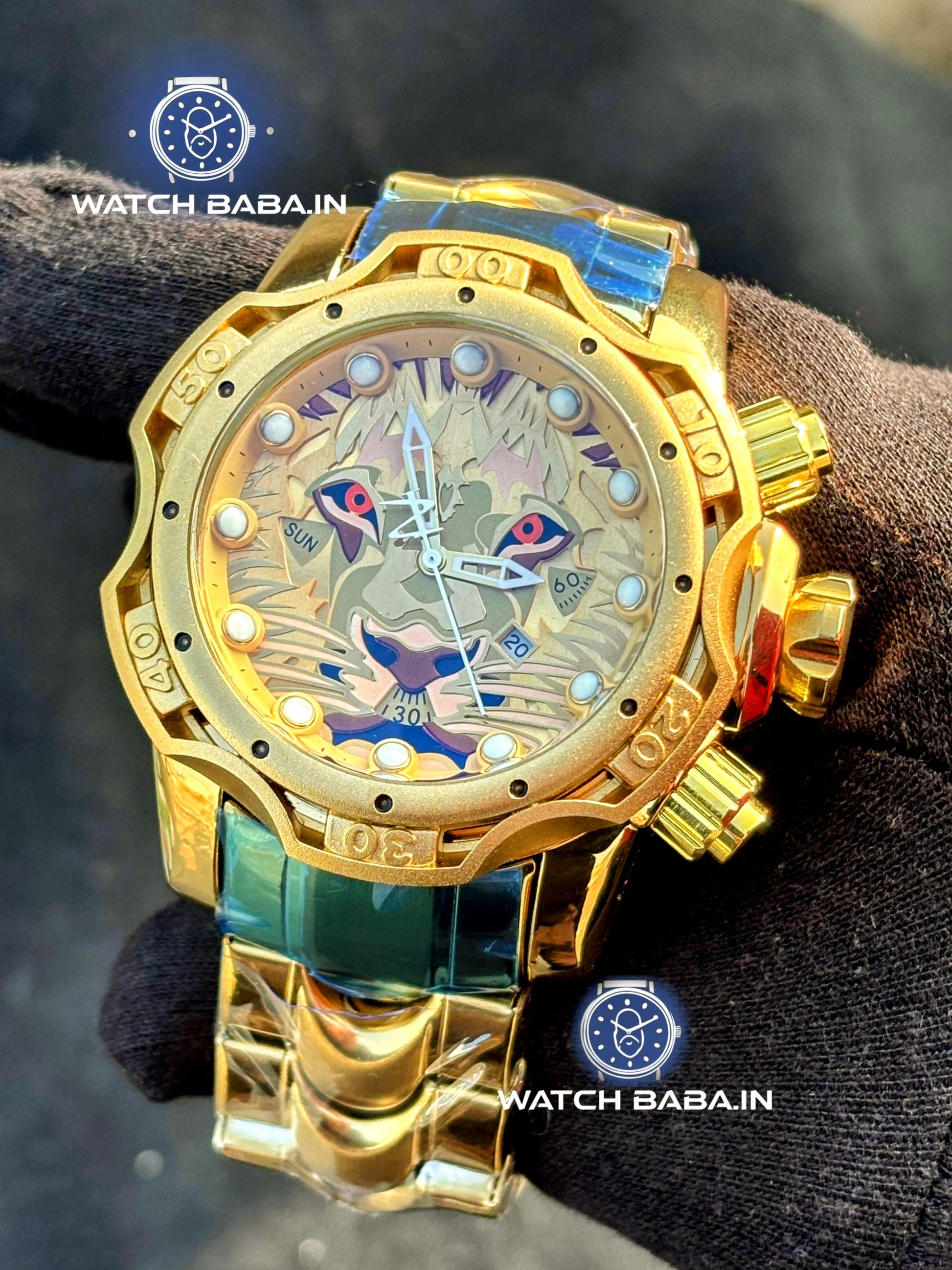 Expertly crafted with a heavy weight and rotating bezel, the Watch Baba Golden Lion Watch boasts a bold and luxurious design. Its big dial and date function offer convenience and functionality, making this a must-have timepiece for any fashion-forward individual.