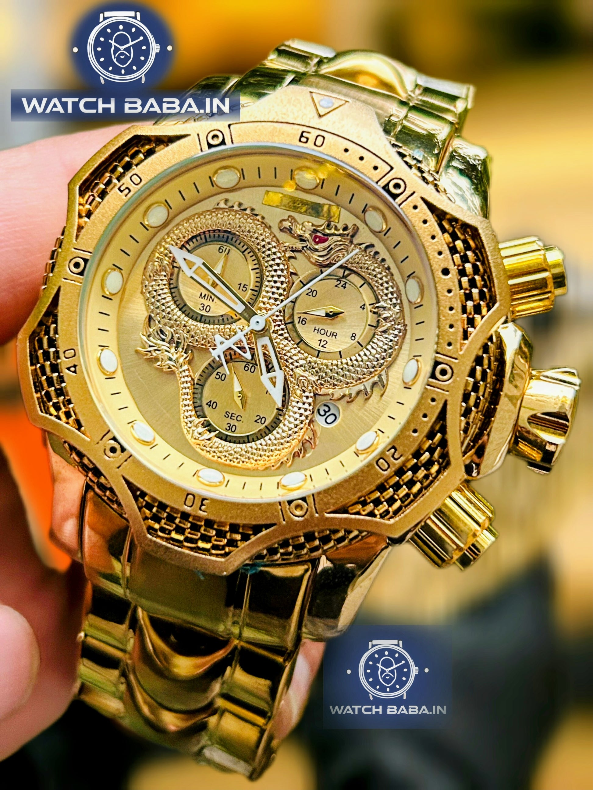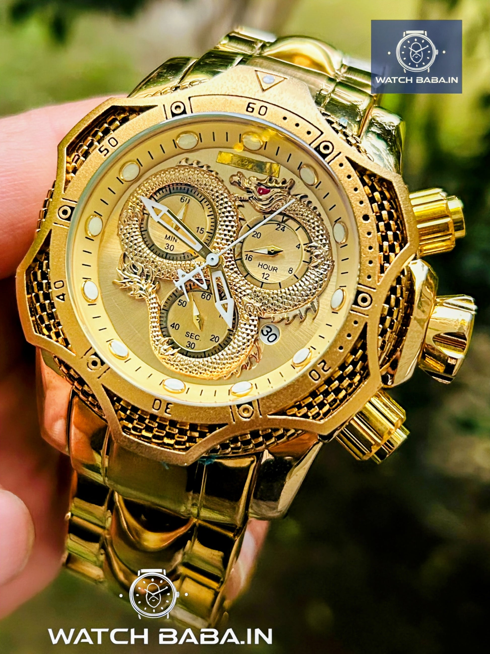 Dragon Gold 52mm Chronograph Men's Watch With Japanese Swiss MovementDragon Gold 52mm Chronograph Men's Watch With Japanese Swiss Movement